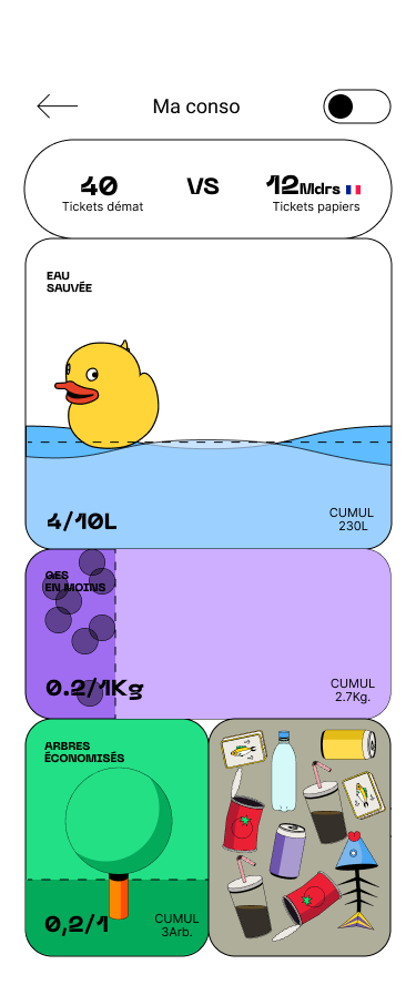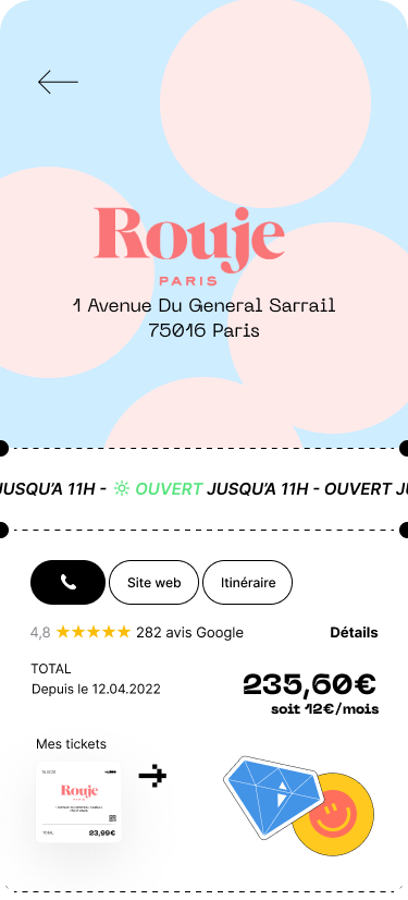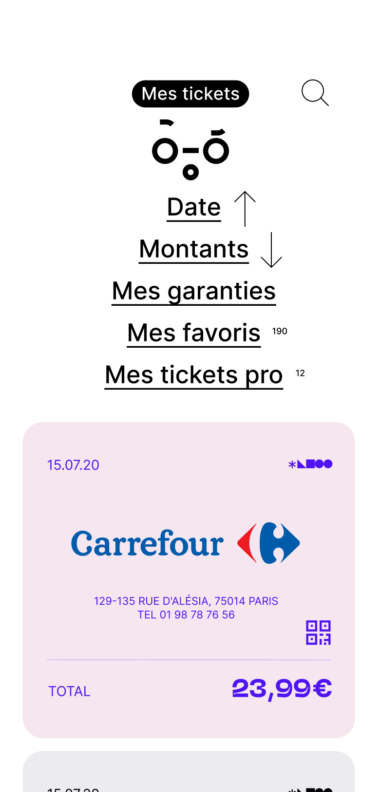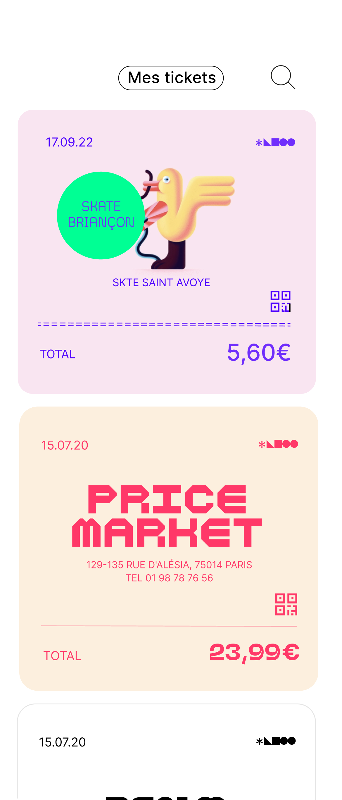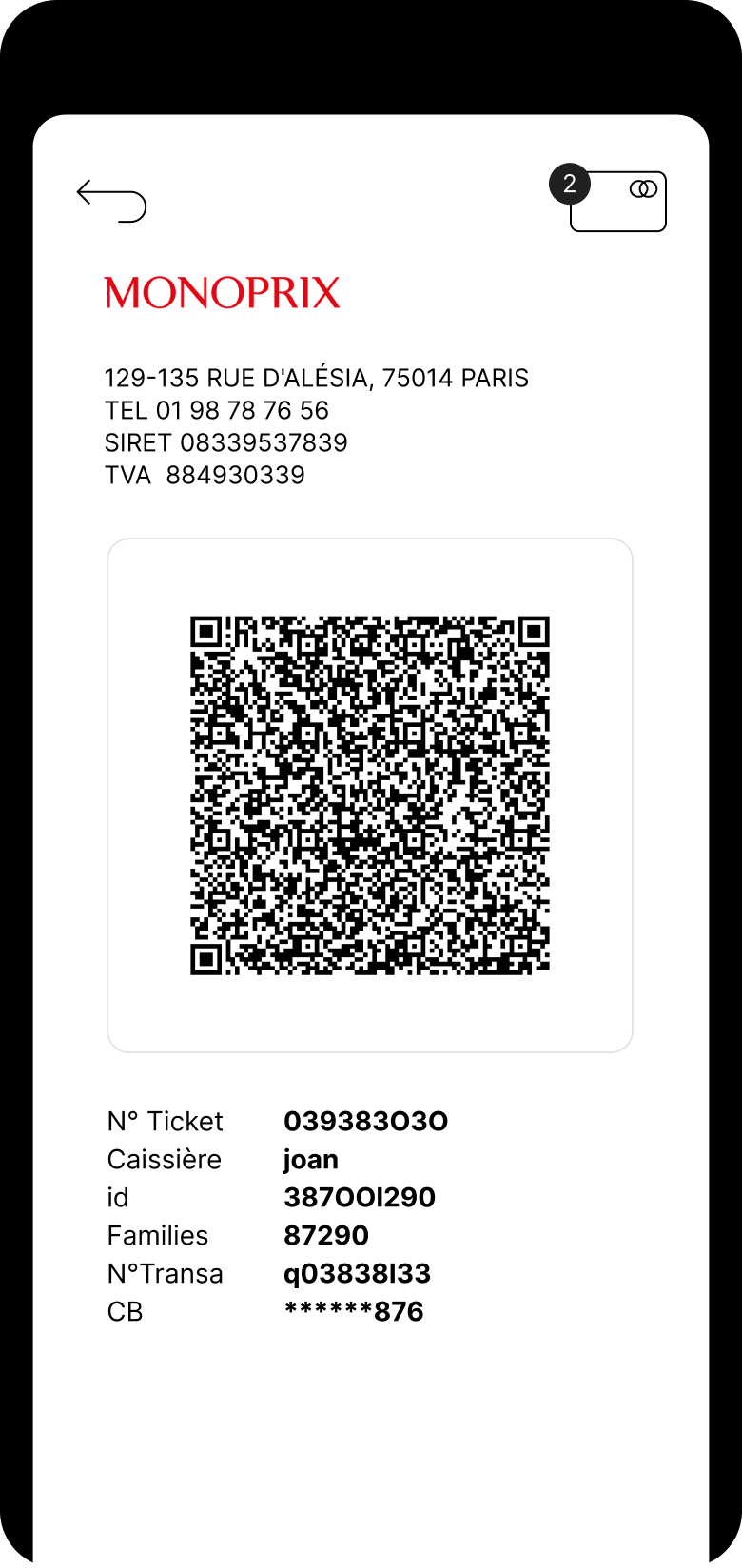 Scan et récupération de tickets digitaux : Permet de scanner un QR code en caisse pour récupérer instantanément son ticket d'achat sur son smartphone (fonctionne même sans connexion internet). Archivage et gestion des achats : Permet de stocker ses preuves d'achats et ses garanties de manière dématérialisée, sans encombrer son portefeuille. Fidélité anonyme : Permet d'adhérer et de participer aux programmes de fidélité des commerçants sans jamais livrer ses informations personnelles. Jeux et loteries : Permet de participer à des jeux-concours interactifs créés par les magasins pour tenter de gagner des lots (pouvoir d'achat, réductions, etc.). Réception de notifications (Bons plans) : Permet de recevoir des alertes directes de ses commerçants préférés (promotions, événements, newsletters, plat du jour, etc.) de manière non intrusive. Consultation des "Fiches Magasins" : Permet d'accéder à l'espace vitrine d'un commerce pour y consulter des informations pratiques : horaires d'ouverture, lien vers le site internet, avis Google, catalogues produits et coupons de réduction.
